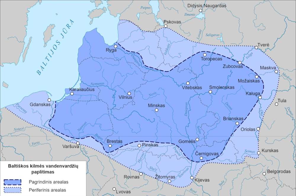 Больш за тое, нават пачаткаў назвы “Літва” зусім абгрунтавана шукаць на ўсходзе, на Павоччы (там, дзе рэчка Нальша, ад якой імаверна калісняя літоўская Нальшанская зямля): “У народных песнях фіна-вугорскай мардвы бог Пургіне (запазычанне з літоўскага “Пяркунас”) бярэ сабе ў жонкі зямную дзяўчыну з іменем “Літова” – гэта варыянт шырока вядомага вобразу пра бога, які бярэ сабе за жонку зямлю, якою кіруе.” Пры гэтым адкрытым застаецца пытанне, ці гэта племя літва (адно з многіх балцкіх) адтуль прыйшло, або так сапраўды магла агулам звацца ўся вялізная старабалцкая прастора (думка Разаўскаса на баку другога варыянту). Тым часам сведчанне пра “Літову” — вельмі важнае, бо прамая паралель — фінская Суометар (“дачка Суомі”, прамацерка фінаў), да якой сваталіся Месяц, Сонца ды сын Палярнай зоркі (за апошняга і пайшла).