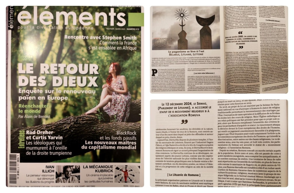 Sv.: У апошнім нумары французскага часопіса Новых правых “Элементы”, традыцыйны для яго раздзел “Дасье” гэтым разам прысвечаны тэме Паганства. Асабліва прыкметным у нізцы падабраных тэкстаў выглядае нарыс “Паганскі ўздым на Ўсходзе: Беларусь, Літва, Латвія”: французскі аўтар інфармуе французскую чытацкую публіку пра “балцкую” этнагенетычную тэорыю, побегам у шэраг згадваюцца “Крыўя”, “Гега Рух”, “Свайкста”, паведамляецца пра шчыльныя беларуска-літоўска-латышскія сувязі паміж этнарэлігійнікамі.